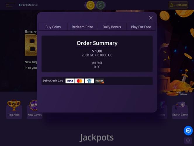 VIPロイヤルティプログラムを進めて特典を獲得すると同時に、Sweepstake.aiがプレイヤー向けに用意した充実したプロモーションプランで、さらに充実した体験をお楽しみいただけます。アカウントを作成すると、ウェルカムパッケージが届きます。
