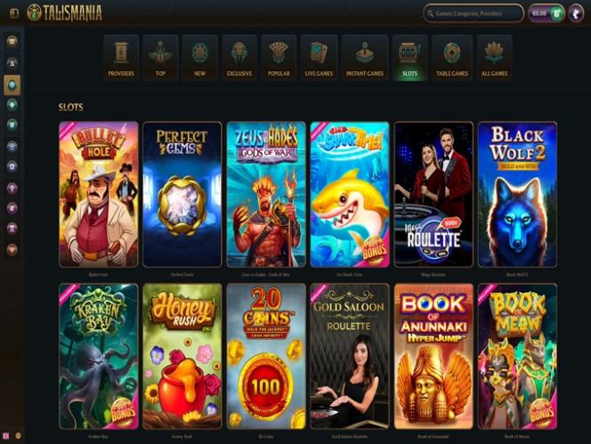 オンラインスロットはプレイヤーの間で最も人気のあるゲームであるため、Talismania Casinoは、あらゆる経験レベルのギャンブラーに適した幅広いスロットコレクションを提供しています。運営会社は6,000を超えるゲームタイトルを擁し、この多様なゲームラインナップでプレイヤーを飽きさせず、楽しませています。