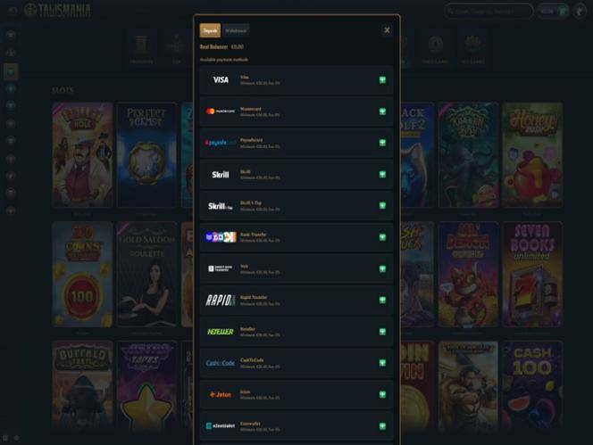 - Talismania Casino は、いつでも検証プロセスを実行し、それを完了するために必要な個人識別文書を要求する権利を留保します。