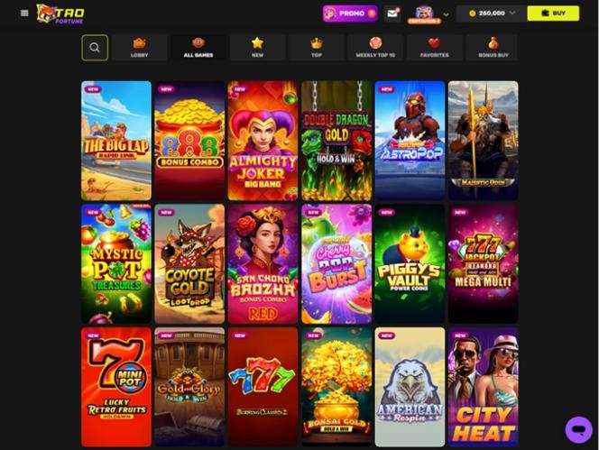 その後は、毎週開催される数々のプロモーション、日替わり賞品、貯金箱システム、スクラッチカード、あるいは様々なトーナメントやイベントへの参加を通じて、TAOコインとシークレットコインの報酬を獲得できます。プロモーション資料は豊富に用意されており、ブランドは定期的に新しいボーナス、バンドル、追加コンテンツを導入しています。