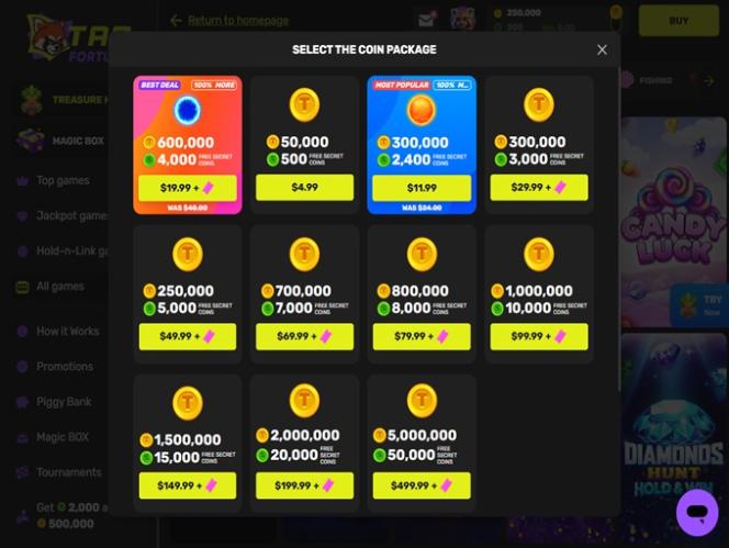 TAOコインは、ウェルカムパッケージ、デイリープライズ、スクラッチカード、ウィークリープロモーション、あるいはゲームをプレイするなど、様々な方法で入手できます。また、サイトストアからバンドルで直接購入できることも重要です。