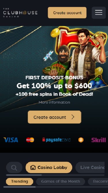 カジノプラットフォームはシンプルながらもモダンです。Clubhouseは、洗練されたスタイリッシュなロゴを採用し、多くの注目を集め、全体的なイメージを向上させ、ブランドのビジュアルアイデンティティに付加価値を与えています。プラットフォームのダークな背景と相まって、洗練された雰囲気を醸し出し、カジノプレイヤーに上品なオンラインギャンブルの雰囲気を醸し出しています。