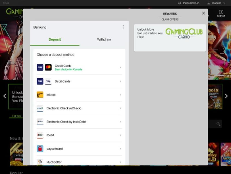 Gaming Club Casino は Microgaming, Net Entertainment, Evolution Gaming, Ezugi, Rabcat, Pragmatic Play, Red Tiger Gaming, Triple Edge Studios, Northern Lights Gaming, Stormcraft Studios, Switch Studios, Electric Elephant Games, All41 Studios, Gameburger Studios, Pulse 8 Studios, Neon Valley Studios, SpinPlay Games, Real Dealer Studios, GONG Gaming, On Air Entertainment, Buck Stakes Entertainment, Games Global, Old Skool Studios, Foxium, Just For The Win, PearFiction Studios, Slingshot Studios, Fortune Factory Studios, Crazy Tooth Studio, Alchemy Gaming, Snowborn Games, Gold Coin Studios, Half Pixel Studios, Eurostar Studios and Aurum Signature Studiosを採用しており、数百ものゲームライブラリを備えています。カジノはサイト上のインスタントプレイプラットフォームからアクセスでき、ウェブブラウザから直接プレイできます。モバイルサイトも利用可能で、スマートフォンやタブレットからプレイできます。