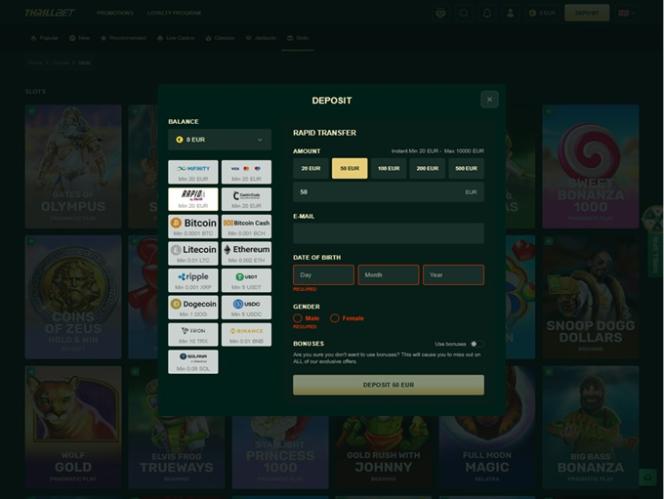 総合的に見て、Thrillbetカジノはプレイヤーの皆様に多種多様なカジノゲームを豊富に取り揃え、模範的なサービスを提供してきました。お客様の個人的な好みや嗜好に関わらず、きっとお探しのゲーム、そしてお客様にぴったりのゲームが見つかると確信しています。