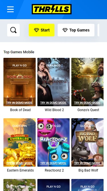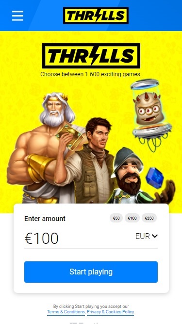 Thrills Casinoは Microgaming, Net Entertainment, 1x2gaming, Barcrest, Big Time Gaming, ELK Studios, Evolution Gaming, lightningboxgames, Play'n GO, Quickspin, Relax Gaming, Thunderkick, Yggdrasil, Pragmatic Play, Nolimit City, Red Tiger Gaming, Spinomenal, Fantasma Games, Kalamba, Northern Lights Gaming, Stormcraft Studios, Electric Elephant Games, Bulletproof Games, All41 Studios, Gameburger Studios, Neon Valley Studios, Golden Rock Studios, Shuffle Master, Lady Luck Games, Games Global, NextGen, NYX Interactive, Push Gaming, WMS, SG Interactive, Red7Mobile, Scientific Games, Authentic Gaming, Old Skool Studios, Foxium, Just For The Win, PearFiction Studios, Fortune Factory Studios, 4ThePlayer, AvatarUX, Crazy Tooth Studio, ReelPlay, Alchemy Gaming, Hacksaw Gaming, Max Win Gaming, Gold Coin Studios, Bang Bang Games, Half Pixel Studios, SilverBack Gaming, Peter And Sons, Eurostar Studios, Aurum Signature Studios and Area Vegasを採用しており、ゲームはウェブベースのインスタントプレイプラットフォームを通じて提供されます。プレイヤーはスマートフォンやタブレットでもプレイできるゲームを見つけることができます。