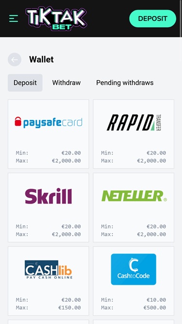 TikTak Betは、カナダ、オーストリア、ドイツ、フィンランドのお客様を対象とした魅力的なスポーツブックサイト兼オンラインカジノです。カナワケ・ゲーミング・コミッションの認可・登録を受けており、ぜひ訪れていただきたい合法的なオンラインカジノの一つです。私たちはTikTak Betに好印象を持ち、調査結果を近日中に皆さんと共有する予定ですので、お楽しみに!