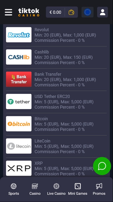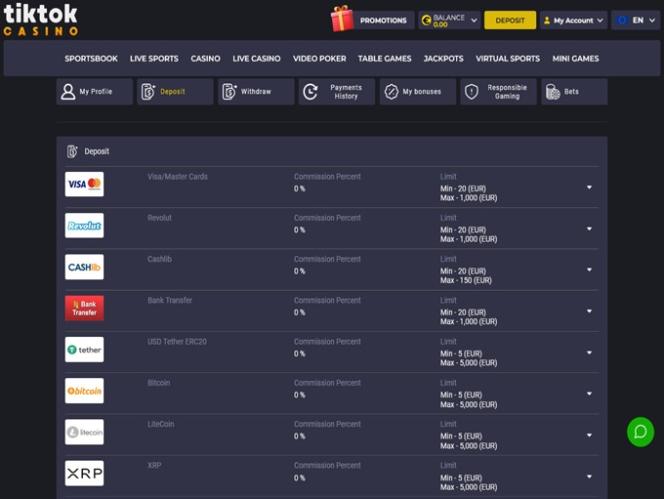 決済方法の利便性は、TikTokカジノが力を入れてきたもう一つの重要な要素です。プレイヤーは、カジノ残高を管理するために、様々な銀行決済オプションから選択できます。従来の決済方法としては、 Visa 、 Mastercard 、銀行振込、 Jeton 、 MiFinity 、 eZeeWalletなどが挙げられますが、最新の決済方法としては、ビットコイン、イーサリアム、ライトコイン、テザー、リップルなどの暗号通貨が挙げられます。