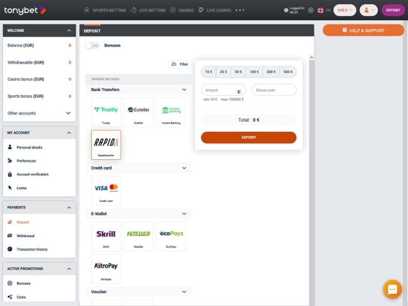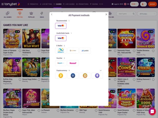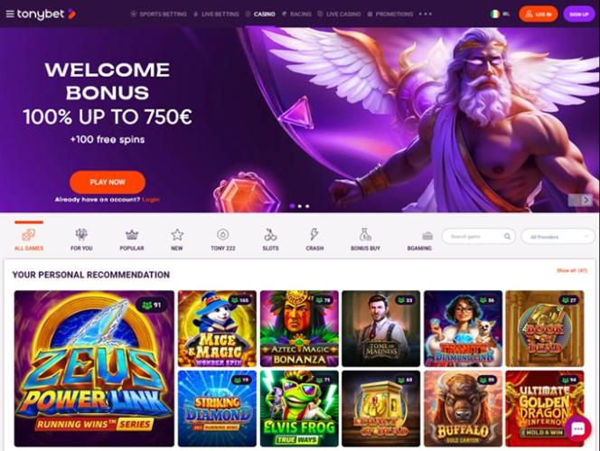 TonyBet は、標準的なカジノに加えて、ライブディーラー カジノ、フル スポーツブック、オンライン ポーカー ルームを顧客に提供しています。