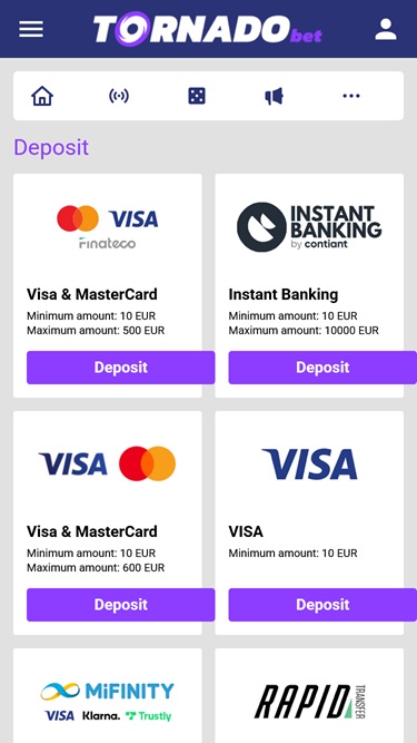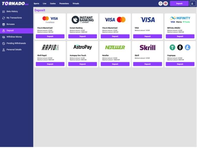 以下は、TornadoBet カジノが提供する入金および出金方法の選択肢です。