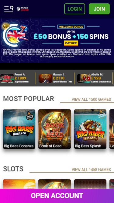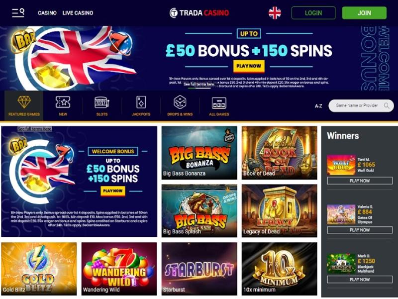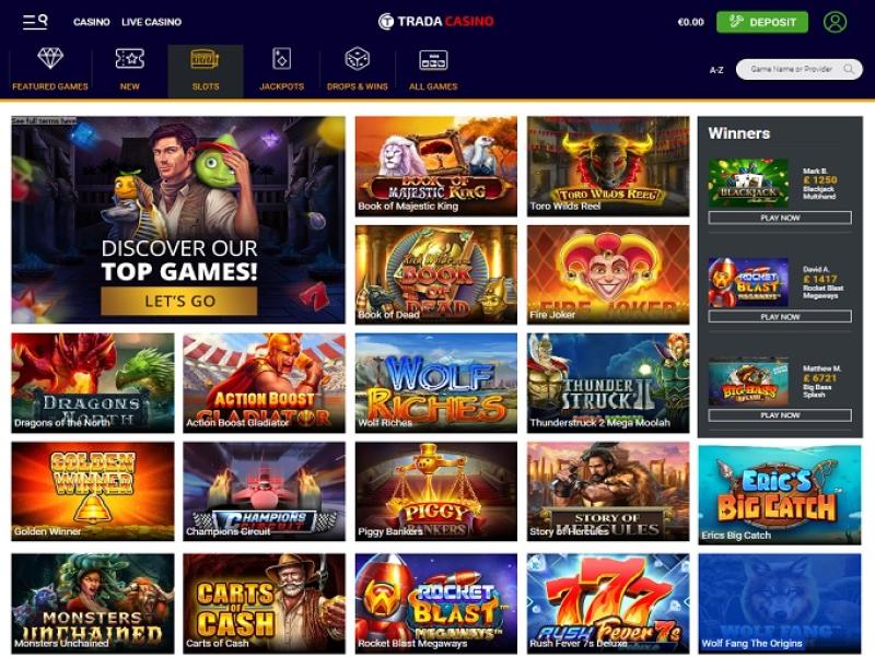 Trada Casinoは Microgaming, Net Entertainment, BetSoft, 1x2gaming, Amatic Industries, Barcrest, Big Time Gaming, Evolution Gaming, EYECON, Ezugi, iSoftBet, lightningboxgames, Oryx, Play'n GO, playson, Quickspin, Rabcat, Yggdrasil, Wazdan, Realistic Games, Booming Games, Stakelogic, Pragmatic Play, GAMING1, Red Tiger Gaming, Spinomenal, Red Rake Gaming, Skillzzgaming, SYNOT Games, Skywind, Triple Edge Studios, Stormcraft Studios, Switch Studios, All41 Studios, Gluck Games, Gameburger Studios, Neon Valley Studios, SpinPlay Games, Real Dealer Studios, GONG Gaming, Buck Stakes Entertainment, Games Global, Wizard Games, 2by2 Gaming, Ainsworth, Blueprint Gaming, NextGen, Pariplay, Tom Horn Gaming, WMS, Inspired Gaming, SG Interactive, Gamomat, Red7Mobile, Scientific Games, Reel Time Gaming, Authentic Gaming, betiXon, Bally Wulff, Betdigital, Just For The Win, Wild Streak Gaming, Slingshot Studios, Fortune Factory Studios, RubyPlay, 4ThePlayer, Gamevy, Crazy Tooth Studio, ReelPlay, Alchemy Gaming, Snowborn Games, Hacksaw Gaming, Bang Bang Games, Slotmill, Lucksome Gaming and Area Vegasを採用しており、カジノのゲームはウェブベースのインスタントプレイプラットフォームを通じて提供されます。このプラットフォームでは、カジノのすべてのサービスがインターネットブラウザを通じて提供されます。モバイルプレイにも対応しており、プレイヤーはスマートフォンやタブレットからゲームをプレイできます。
