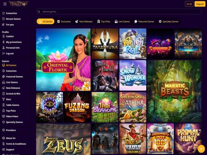 Tradition Casino 同様にホームです 62以下にリストされているその他のゲーム: