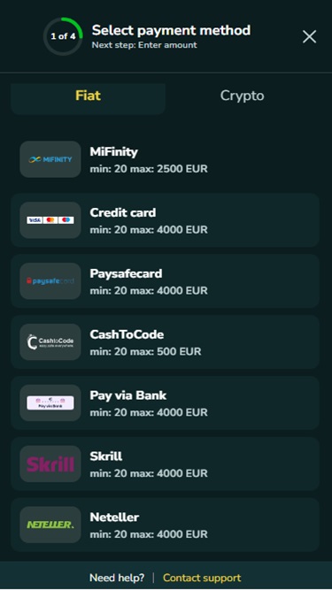 ウェブサイトの左側にある縦長のメニューから、すべてのゲーム、プロモーション、VIPクラブ、ロイヤルティプログラム、カスタマーサポート、その他のセクションにアクセスできます。ここで、環境の言語を英語、ノルウェー語、ドイツ語、フィンランド語に変更することもできます。