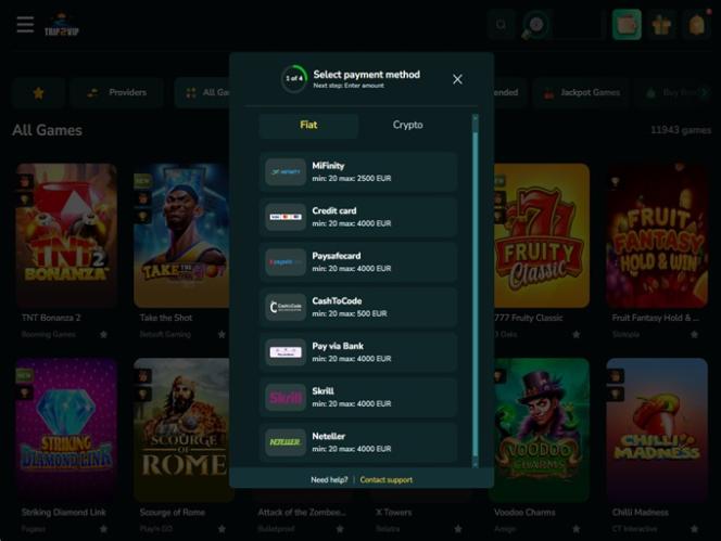 Trip2Vipをメインのカジノにする場合、 115以上のユニークなスタジオを擁しているため、プレイできるゲーム数が限られていることを心配する必要はありません。そのセレクションは広範かつ多様で、数千もの素晴らしい製品を提供しています。