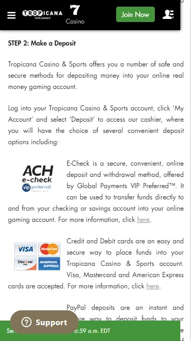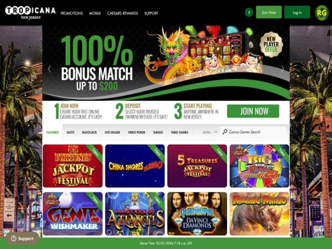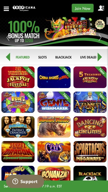 Tropicana Casinoは Microgaming, Net Entertainment, Barcrest, Big Time Gaming, iSoftBet, lightningboxgames, IGT, Spin Games, Triple Edge Studios, Stormcraft Studios, All41 Studios, Gameburger Studios, Shuffle Master, Design Works Gaming, Games Global, Ainsworth, Aristocrat, Bally Technologies, bluberi, Blueprint Gaming, IGSoft, NextGen, WMS, Inspired Gaming, Konami, Gaming Realms, SG Interactive, Red7Mobile, Scientific Games, Betdigital, Incredible Technologies, PearFiction Studios, Fortune Factory Studios, 4ThePlayer, High 5 Games, ReelPlay, AGS Interactive, Atomic Slot Lab and Light & Wonderを採用しており、カジノのゲームはウェブベースのインスタントプレイプラットフォームで提供されており、お気に入りのインターネットブラウザで起動できます。サイトのデザインはそれほど優れているわけではありませんが、機能性は十分です。プレイヤーはモバイルデバイスからサイトにアクセスし、外出先でも本格的なカジノ体験をお楽しみいただけます。Blackjack