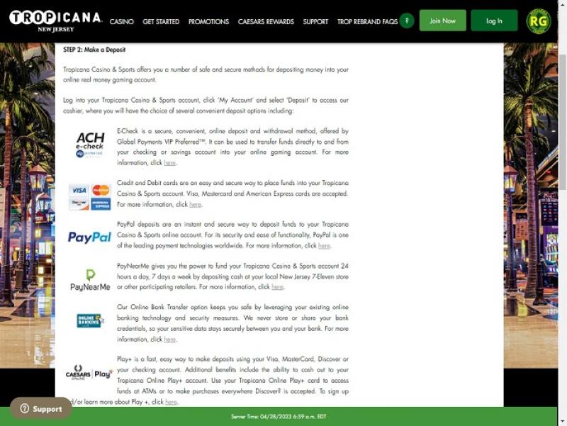 トロピカーナ・カジノは1981年にオープンした遊歩道沿いのカジノで、オールド・ハバナ風の体験をお客様に提供しています。カジノに加え、2,400室以上のホテル客室と充実したエンターテイメント施設を併設しています。オンライン賭博はニュージャージー州がオンライン賭博を認可した後に始まり、トロピカーナはそれ以来、独自のプラットフォームをお客様に提供しています。トロピカーナでオンラインでプレイするには、21歳以上で、州内に居住している必要があります。カジノ情報