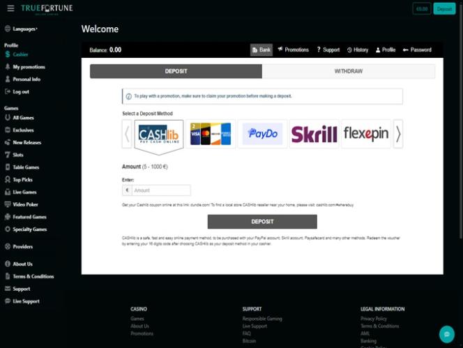 True Fortune Casinoは、TrueBetが運営するオンラインベッティングサイトです。2020年にオープンしたこのカジノは、アメリカを中心に展開していますが、フランス、ブラジル、メキシコ、スペイン、オーストラリアのプレイヤーもターゲットにしています。豊富なビデオスロットに加え、テーブルゲームやライブディーラーカジノ、そして充実した決済オプションも提供しています。改善の余地はあるものの、True Fortuneは規制対象国にお住まいのプレイヤーにとって、優れた選択肢となっています。カジノ情報