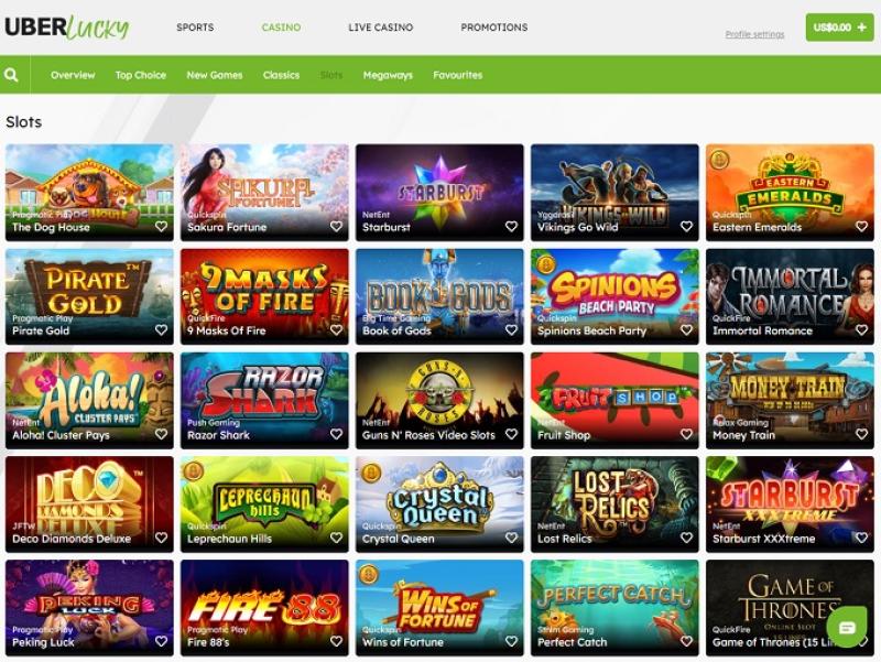 UberLucky カジノでは、Starburst、Starburst XXXtreme、Bonanza、Vikings Go Berzerk、Wolf Gold、 Money Train 2、Golden Fishtank、Big Bad Wolf、Sweet Bonanza、Valley of the Gods、Twin Spin、John Hunter and the Scarab Queen、Extra Chilli、Vikings Go To Hell、Mustang Gold、Wild Swarm、Jammin Jars、Hellcatraz、John Hunter and the Book of Tut、Jack and the Beanstalk、Fat Rabbit、Steam Tower、Mega Moolah、Neon Staxx、Hot Spin、Boost It、The Grand、Starburst、Vikings Go Wild、Eastern Emeralds、Crown of Valor、Showdown Saloon、Megaways Starz、Divine Fortune Megaways、Bonanza など、幅広いスロット コレクションを提供しています。プログレッシブ ジャックポットもご用意しています。個別に分類されていないため、プレイヤーは見つけるのに多少の労力を費やす必要があります。