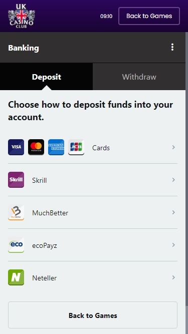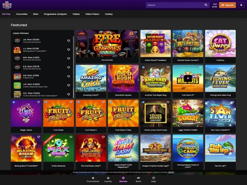 UK Casino Clubは Microgaming, Evolution Gaming, Rabcat, Triple Edge Studios, Northern Lights Gaming, Stormcraft Studios, All41 Studios, Gameburger Studios, Pulse 8 Studios, Neon Valley Studios, SpinPlay Games, GONG Gaming, On Air Entertainment, Buck Stakes Entertainment, Games Global, Old Skool Studios, Foxium, Just For The Win, PearFiction Studios, Slingshot Studios, Fortune Factory Studios, Crazy Tooth Studio, Alchemy Gaming, Snowborn Games, Gold Coin Studios, Half Pixel Studios, Eurostar Studios and Aurum Signature Studiosによって運営されており、数百ものゲームをプレイヤーに提供しています。カジノソフトウェアは、Webベースの配信プラットフォームとダウンロード可能なソフトウェアクライアントを通じて配信されます。ダウンロード可能なソフトウェアクライアントを使用すると、カジノソフトウェアをハードドライブに直接インストールできます。どちらの方法を選択しても、パフォーマンスにほとんど違いはありません。Blackjack