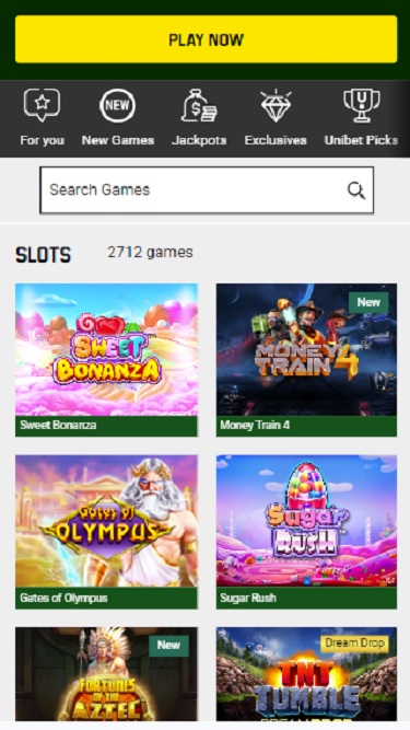 Unibetは、 Microgaming, Net Entertainment, Playtech, 1x2gaming, Barcrest, Big Time Gaming, ELK Studios, Evolution Gaming, lightningboxgames, Novomatic, Oryx, Play'n GO, playson, Quickspin, Relax Gaming, Thunderkick, Yggdrasil, Realistic Games, Betgames, Stakelogic, Pragmatic Play, Nolimit City, Felt Gaming, Red Tiger Gaming, IGT, Fantasma Games, Kalamba, Spin Games, Skywind, Triple Edge Studios, Northern Lights Gaming, Stormcraft Studios, Electric Elephant Games, Pocket Games Soft, Bulletproof Games, All41 Studios, Gluck Games, Gameburger Studios, Neon Valley Studios, SpinPlay Games, GONG Gaming, Blue Guru Games, On Air Entertainment, Buck Stakes Entertainment, Design Works Gaming, Games Global, Bally Technologies, bluberi, Blueprint Gaming, Greentube, Leander Games, NextGen, Push Gaming, WMS, Inspired Gaming, SG Interactive, Gamomat, Red7Mobile, Scientific Games, Reel Time Gaming, BF Games, Iron Dog Studio, Foxium, Just For The Win, Storm Gaming Technology, PearFiction Studios, Wild Streak Gaming, Slingshot Studios, Fortune Factory Studios, 4ThePlayer, AvatarUX, Gamevy, Crazy Tooth Studio, High 5 Games, ReelPlay, Alchemy Gaming, Rarestone Gaming, BB Games, Black Pudding Games, Snowborn Games, Boomerang Studios, Hacksaw Gaming, Max Win Gaming, Gold Coin Studios, Bang Bang Games, SilverBack Gaming, Peter And Sons, Eurostar Studios, Aurum Signature Studios, Lucksome Gaming, Area Vegas and Betradarが提供する数百ものカジノゲームを提供しています。スロット、ビデオポーカー、テーブルゲーム、宝くじ、ビンゴ、スキルゲームなど、豊富なゲームラインナップをご用意しています。