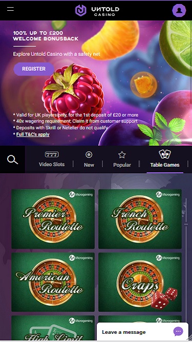 標準的なカジノ体験はやや控えめですが、ライブディーラーカジノはそれを補って余りあります。UntoldはEvolution Gaming社のライブソフトウェアを採用しており、ブラックジャック、バカラ、ルーレットなどのテーブルゲームの高解像度版を提供しています。