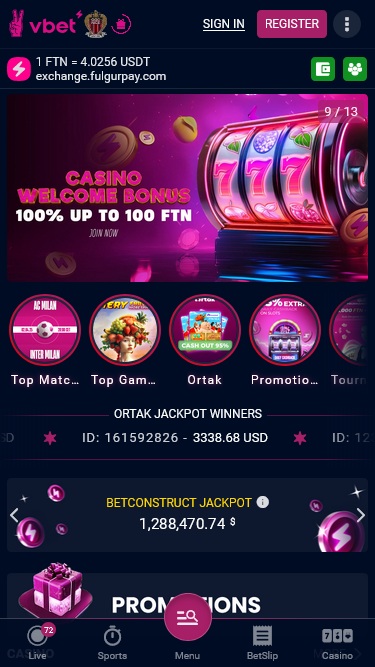 Vbet カジノは Microgaming, Net Entertainment, Playtech, BetSoft, 1x2gaming, Amatic Industries, Big Time Gaming, ELK Studios, Espresso Games, Evolution Gaming, EYECON, Ezugi, Genesis Gaming, Habanero Systems, iSoftBet, Novomatic, Oryx, playson, Quickspin, Rabcat, Relax Gaming, Rival, Saucify, Thunderkick, Vivo Gaming, WM, Yggdrasil, Endorphina, Wazdan, Realistic Games, GameArt, Betgames, Booming Games, BetConstruct, Stakelogic, Pragmatic Play, Nolimit City, Felt Gaming, Red Tiger Gaming, ZEUS Services, Booongo, LuckyStreak, Spinomenal, Felix Gaming, Red Rake Gaming, Inbet Games, Skillzzgaming, Xprogaming, Fugaso, Belatra Games, Fantasma Games, SYNOT Games, Kalamba, Revolver Gaming, Spin Games, Platipus Gaming, Skywind, Spinmatic, Spadegaming, Triple Edge Studios, BGAMING, Northern Lights Gaming, Fazi, Evoplay, Stormcraft Studios, Switch Studios, SA Gaming, OneTouch, Electric Elephant Games, Pocket Games Soft, Dreamtech Gaming, Bulletproof Games, All41 Studios, Gluck Games, Mascot Gaming, TVBet, NetGame Entertainment, Gameburger Studios, Pulse 8 Studios, Slot Factory, Neon Valley Studios, DLV, FashionTV, Golden Rock Studios, Radi8 Games, Spearhead Studios, ThunderSpin, SpinPlay Games, Mancala Gaming, 7Mojos, SmartSoft Gaming, KA Gaming, Atmosfera, FilsGame, GONG Gaming, Blue Guru Games, Lady Luck Games, On Air Entertainment, Buck Stakes Entertainment, Caleta Gaming, Creedroomz, Eurasian Gaming, Games Global, Amusnet Interactive, Wizard Games, Ash Gaming, bluberi, Blueprint Gaming, CT Interactive, GamesOS, Greentube, omi-gaming, Pariplay, Tom Horn Gaming, Genii, Gamomat, PlatinGaming, RFranco Group, Wager Gaming, Reel Time Gaming, MGA, BF Games, Bally Wulff, Capecod Gaming, Iron Dog Studio, Old Skool Studios, Foxium, Zitro, Just For The Win, Reflex Gaming, Aspect Gaming, Storm Gaming Technology, PearFiction Studios, Apollo Games, Wild Streak Gaming, Slingshot Studios, Golden Hero, Fortune Factory Studios, Jade Rabbit Gaming, STHLM Gaming, RubyPlay, 4ThePlayer, AvatarUX, Gamevy, Crazy Tooth Studio, NetGaming, High 5 Games, Groove Gaming, ReelPlay, Japan Technicals Games, SlotVision, PlayStar, Alchemy Gaming, Rarestone Gaming, BB Games, Black Pudding Games, Snowborn Games, Boomerang Studios, Hacksaw Gaming, Max Win Gaming, Gold Coin Studios, Bang Bang Games, Gamzix, Half Pixel Studios, Arcadem, Slotmill, Triple Cherry, SilverBack Gaming, Dragon Gaming, Peter And Sons, Eurostar Studios, Aurum Signature Studios, Charismatic, Lotto Instant Win, Onlyplay, FastSpin, Armadillo Studios, Lucksome Gaming, Gamebeat, FlipLuck, Dragoon Soft, Urgent Games, Area Vegas, ELA Games, Leap Gaming, Betradar, PoggiPlay, GoldenRace, Aviatrix, AGT Software, Kiron, 3 Oaks Gaming, Amigo Gaming, Wishbone Games, LiveGames, Yeebet Gaming, PopOK Gaming, Spribe, Jili, Circular Arrow, Print Studios, 5Men Gaming, HammerTime Games, BetSolutions, Four Leaf Gaming, INO Games, Nailed It! Games, Atomic Slot Lab, Neko Games, Reel Kingdom, Oros Gaming, Givme Games, JVL, Indigo Magic, Live88, Bigpot Gaming, VoltEnt and PlayAceによって運営されており、そのゲームはウェブベースのプラットフォームだけでなく、外出先でもプレイできるモバイル サイトを通じても提供されています。