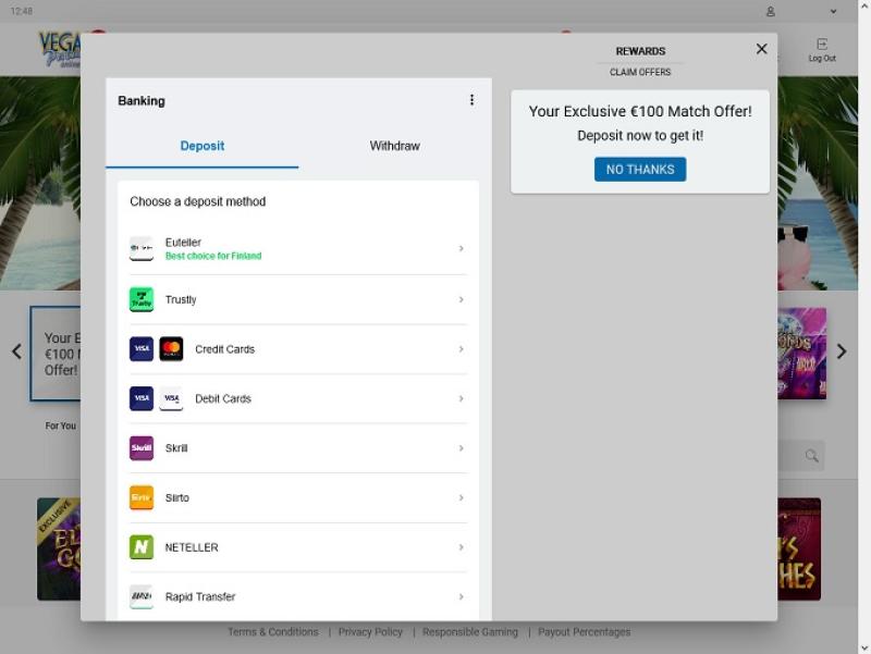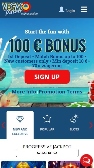 Vegas Palms Casinoは Microgaming, Net Entertainment, Evolution Gaming, Ezugi, Rabcat, Pragmatic Play, Red Tiger Gaming, Triple Edge Studios, Northern Lights Gaming, Stormcraft Studios, Switch Studios, Electric Elephant Games, All41 Studios, Gameburger Studios, Pulse 8 Studios, Neon Valley Studios, SpinPlay Games, Real Dealer Studios, GONG Gaming, On Air Entertainment, Buck Stakes Entertainment, Games Global, Old Skool Studios, Foxium, Just For The Win, PearFiction Studios, Wild Streak Gaming, Slingshot Studios, Fortune Factory Studios, Crazy Tooth Studio, Alchemy Gaming, Snowborn Games, Gold Coin Studios, Half Pixel Studios, Eurostar Studios and Aurum Signature Studiosによって運営されており、数百ものテーブルゲーム、スロット、その他カジノゲームを顧客に提供しています。カジノは、ウェブベースのソフトウェアクライアントとダウンロード可能なソフトウェアクライアントの両方でご利用いただけます。両者に明確な違いはなく、ダウンロードが不要なウェブクライアントを選択するプレイヤーが多いでしょう。モバイルデバイスでプレイしたい場合は、スマートフォンとタブレットに対応したモバイルサイトからプレイできます。