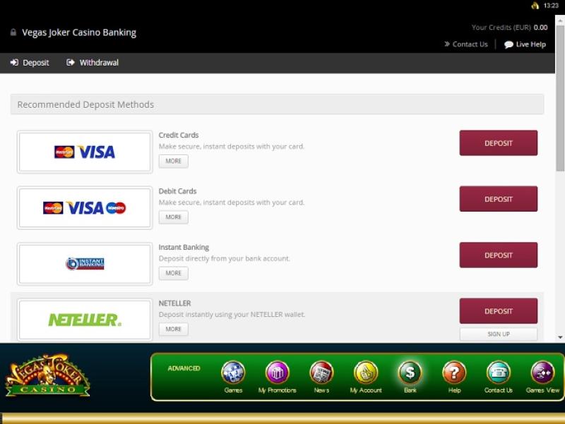 での銀行オプション Vegas Joker Casino