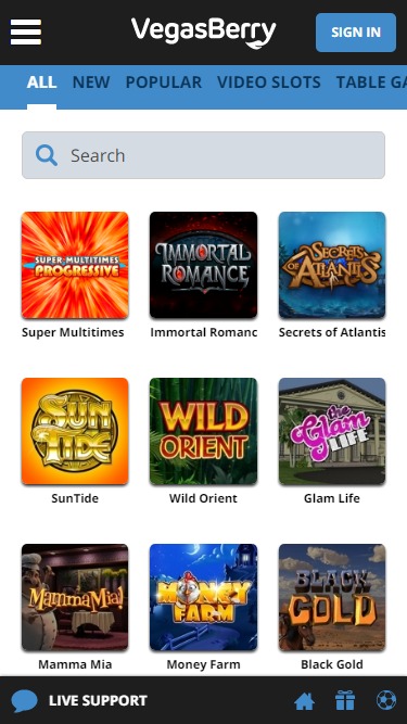 VegasBerry Casinoは Microgaming, Net Entertainment, BetSoft, 1x2gaming, Evolution Gaming, iSoftBet, Oryx, GameArt, Pragmatic Play, Games Global, Intervision Gaming, HollywoodTV and Slotmotionを採用しており、カジノのゲームはインターネットブラウザから直接起動するウェブベースのプラットフォームで提供されます。つまり、コンピューターにソフトウェアをダウンロードする必要はありません。最近では古いカジノでしかソフトウェアをダウンロードする必要がないようです。また、VegasBerry Casinoはモバイルプレイにも完全対応しており、スマートフォンやタブレットからプレイできます。