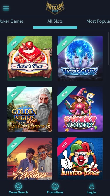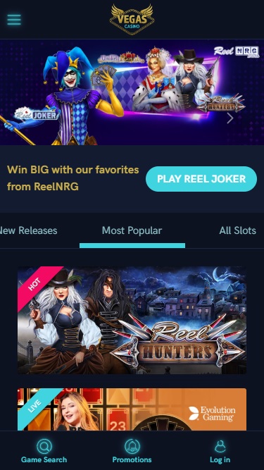 VegasCasinoは Net Entertainment, BetSoft, Play'n GO, Yggdrasil and Nolimit Cityを採用しており、ゲームはウェブベースのインスタントプレイプラットフォームを通じて提供されます。モバイル対応もしており、スマートフォンやタブレットでもゲームをプレイできます。