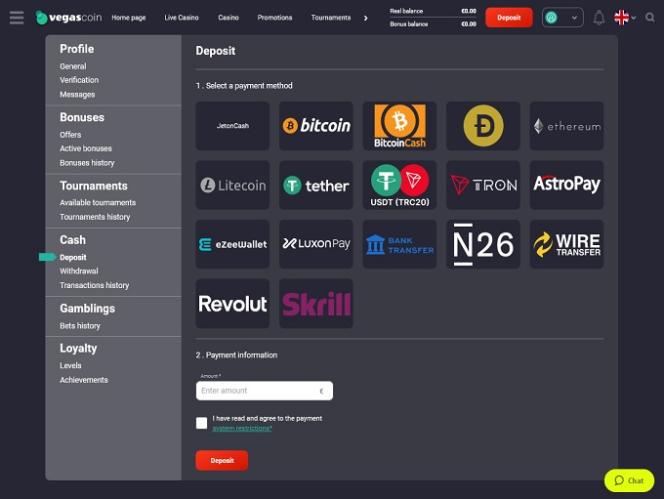 VegasCoin Casino での入金と出金は、さまざまな暗号通貨支払いオプションで可能ですが、他の銀行方法も含まれています。