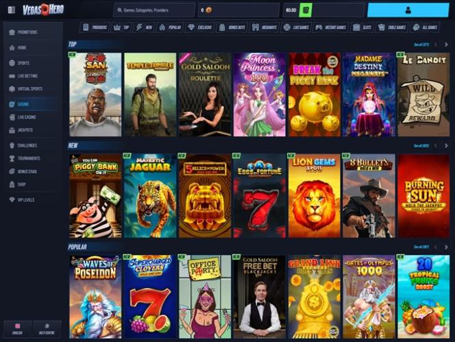 VegasHeroは、プレイヤーが幅広いカジノゲームとスポーツベッティングオプションを楽しめることに特化した、巨大なオンラインカジノです。エキサイティングなオンラインスロット、ライブディーラー、クラッシュゲームから、伝統的なテーブルゲームまで、プレイヤーは数千ものユニークなリリースに加え、豊富なボーナス、プロモーション、トーナメント、チャレンジをお楽しみいただけます。