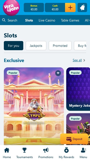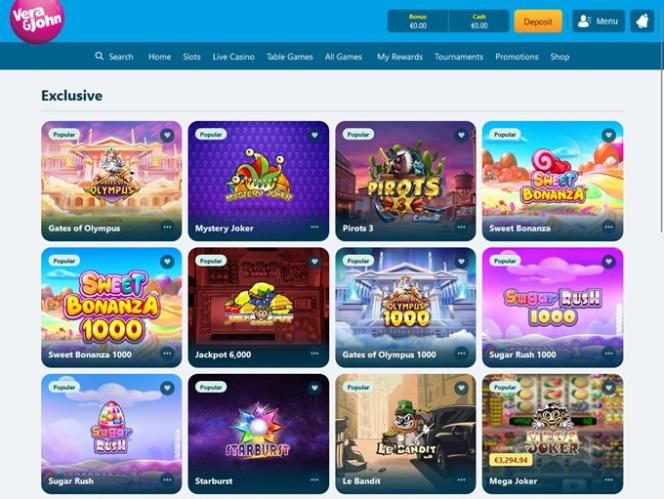 Vera Johnのライブラリの大部分はスロットで、世界最大級のカジノブランドが提供する数百ものゲームが揃っています。また、幸運なスピンで数百万ドルが獲得できるプログレッシブ賞金「Mega Fortune」と「Mega Jackpots」も提供しています。
