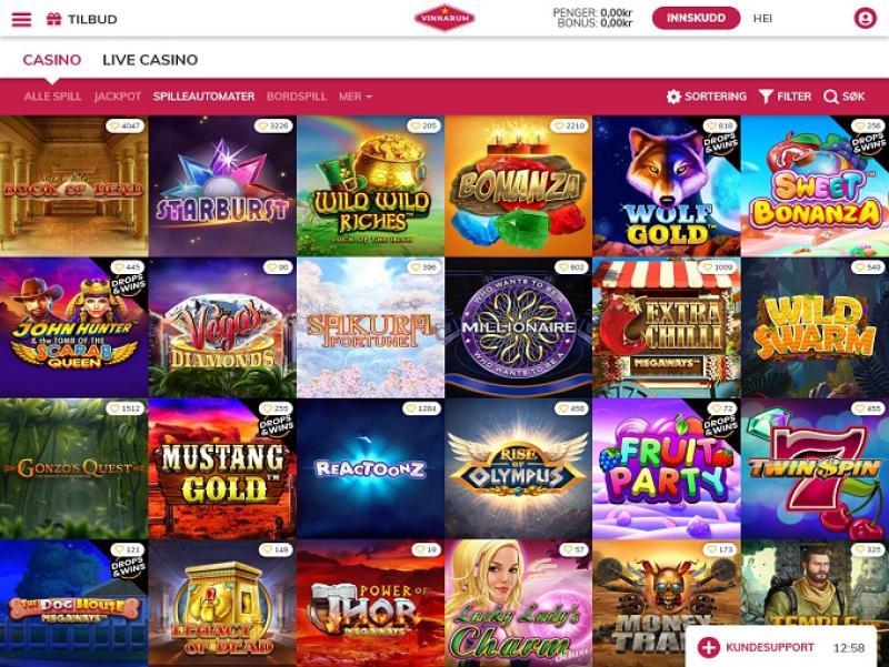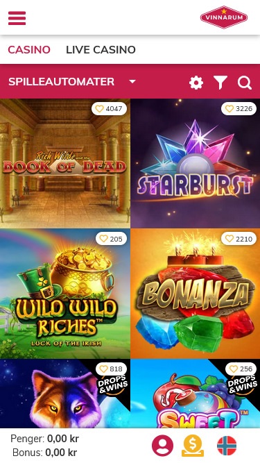 Vinnarum Casinoは Microgaming, Net Entertainment, Playtech, BetSoft, 1x2gaming, Barcrest, Big Time Gaming, ELK Studios, Evolution Gaming, lightningboxgames, Novomatic, Play'n GO, playson, Quickspin, Rabcat, Relax Gaming, Thunderkick, Yggdrasil, Wazdan, Realistic Games, Stakelogic, Pragmatic Play, Nolimit City, Felt Gaming, Red Tiger Gaming, Fantasma Games, Kalamba, Triple Edge Studios, Northern Lights Gaming, Stormcraft Studios, Electric Elephant Games, Bulletproof Games, All41 Studios, Gluck Games, Gameburger Studios, Pulse 8 Studios, TrueLab Games, Shuffle Master, HungryBear Gaming, Games Global, Aristocrat, Bally Technologies, Blueprint Gaming, Greentube, Leander Games, NextGen, Push Gaming, WMS, Inspired Gaming, SG Interactive, Gamomat, Red7Mobile, CORE Gaming, Reel Time Gaming, Bally Wulff, Iron Dog Studio, Foxium, Betdigital, Just For The Win, Reflex Gaming, Storm Gaming Technology, PearFiction Studios, Wild Streak Gaming, Slingshot Studios, Fortune Factory Studios, STHLM Gaming, 4ThePlayer, AvatarUX, Gamevy, Crazy Tooth Studio, High 5 Games, ReelPlay, Rarestone Gaming, BB Games, Black Pudding Games, Boomerang Studios, Bang Bang Games, SilverBack Gaming, Peter And Sons, Eurostar Studios and Lucksome Gamingを採用しており、数百ものゲームを揃えた充実したゲームライブラリを提供しています。プレイヤーはWebベースのプラットフォームからカジノにアクセスでき、Webブラウザから直接ゲームをプレイできます。