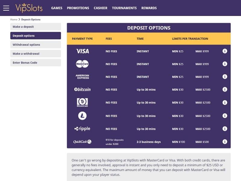 VIP Slotsのバンキングシステムはあまり良くありません。プレイヤーは出金時にNetellerで35ドル、銀行送金で70ドルという高額な手数料を支払わなければならず、出金には5~7営業日かかります。さらに、2万ドル以上を獲得したプレイヤーは、賞金が複数回に分割される可能性があります。これは大規模な見直しが必要な部分であり、特に競合他社と比較すると、VIP Slotsでプレイする価値を失わせています。