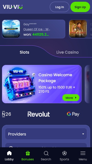 Viu Viu Casinoは、主にカナダとオランダのプレイヤーにゲームとコンテンツを提供するギャンブルサイトです。スロット、テーブルゲーム、ライブディーラー、クラッシュゲームなど、幅広いカジノゲームを取り揃えているだけでなく、スポーツベッティングのオプションも豊富に提供しています。ボーナスや仮想通貨の取り扱いなど、充実したプロモーションプランも魅力で、多くのオランダとカナダのプレイヤーがこのブランドを絶賛しているのも不思議ではありません。