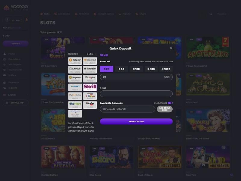 プレイヤーのプライバシー保護は、このカジノ運営会社にとってもう一つの重要な任務です。すべての取引と個人情報は最新のSSL暗号化によって保護されており、Voodoo Casinoは安全なゲームプレイ環境です。
