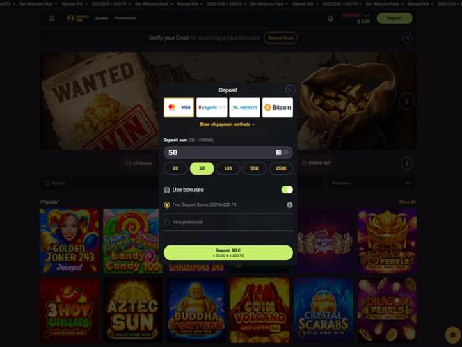 非常に魅力的なロイヤルティプログラムに加え、WantedWin Casino はプレイヤー向けに数々の魅力的なプロモーションとボーナスも提供しています。この環境に慣れたばかりの方には魅力的なウェルカムオファーをご用意しており、既にこの環境に慣れた方には様々なボーナスをご用意しております。