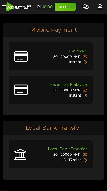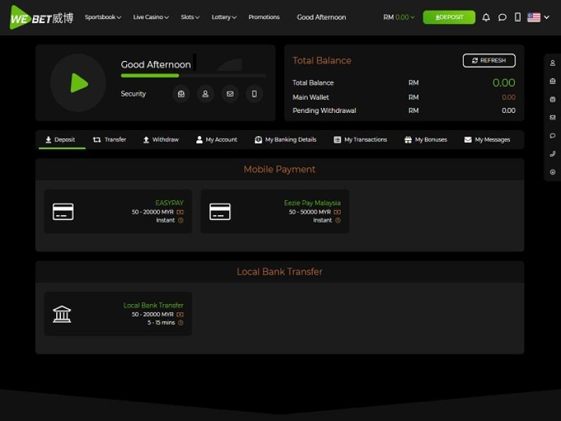 WeBetカジノのバンキングシステムは優れており、プレイヤーはクレジットカード、eWalletなど、様々な方法で入金・出金できます。出金スピードも良好で、最低出金額も悪くありません。