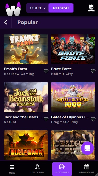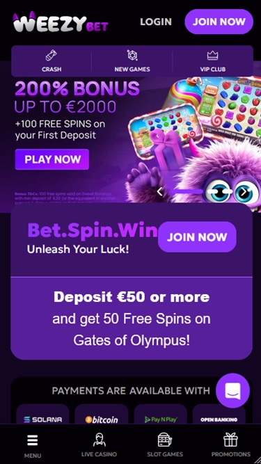 WeezyBet.comは、パソコンだけでなくモバイルデバイスからもアクセスできる、ユーザーフレンドリーなオンラインカジノです。パソコンでギャンブルを楽しみたい方も、外出先でカジノゲームをプレイしたい方も、すべてのプラットフォームで高速な読み込み時間と美しいインターフェースをお楽しみいただけます。