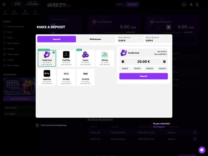 WeezyBet.comは、コモロ連合のアンジュアン自治島政府によって規制およびライセンスされているオンラインカジノです。この運営会社は、フィンランド、デンマーク、ドイツ、オランダ、イタリア、ギリシャ、カナダに拠点を置くプレイヤーをターゲットとしています。他のギャンブル管轄区域にお住まいの場合でも、このブランドは第一印象で非常に魅力的に見えるので、ぜひ注目してください。