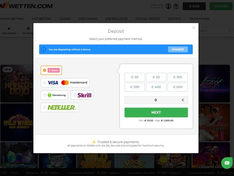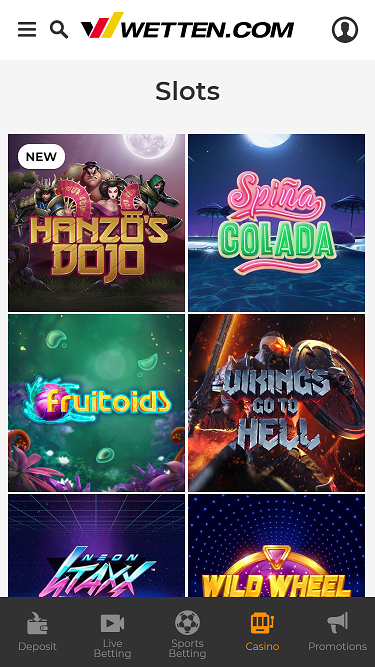 Wettenでは、標準的なカジノに加え、充実したスポーツブックを提供しています。ライブカジノもご利用いただけます。