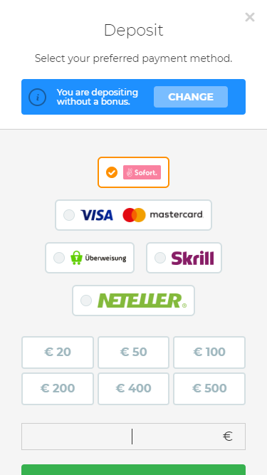 Wettenのバンキングシステムはやや制限されていますが、機能は問題なく動作します。クレジットカード、eWallet、銀行振込で入出金が可能で、ほとんどの入金は即座に反映されます。eWalletからの出金は24時間以内に行われ、他の方法ではより時間がかかりますが、これはWettenというよりも、方法自体によるものです。