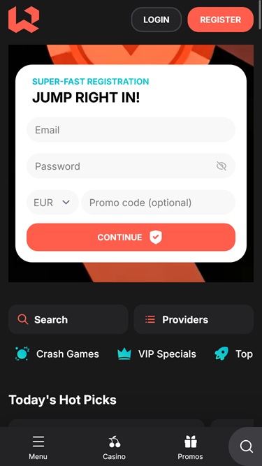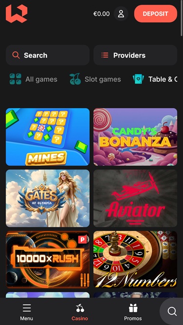 ダークな背景と赤を基調とした、洗練されたクールなカラーパレットが、環境とユーザーインターフェースに完璧にマッチしています。プレイヤーは、ウェブサイトのあらゆるセクションやカジノゲームを閲覧する際に、素晴らしい体験をお楽しみいただけます。すべてが直感的で読み込みも速いため、スムーズなゲームセッションが期待できます。