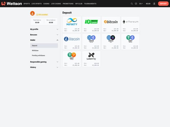 しかし、それだけではありません。Wettsonには専用のスポーツベッティングセクションがあり、幅広いスポーツやeスポーツイベントを毎日楽しめる大規模なスポーツブックにアクセスできます。このスポーツブックは、プレイヤーの好みやニーズにきめ細かく対応しており、ライブベッティングも利用できる点も特筆すべき点です。