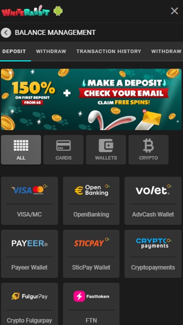 プレイヤーは、Visa、 MasterCard 、UnionPay、Advcash、Payeerなど、様々な決済方法で入金・出金を行うことができます。また、暗号通貨をメインの決済手段として利用したい方も、問題なくご利用いただけます。
