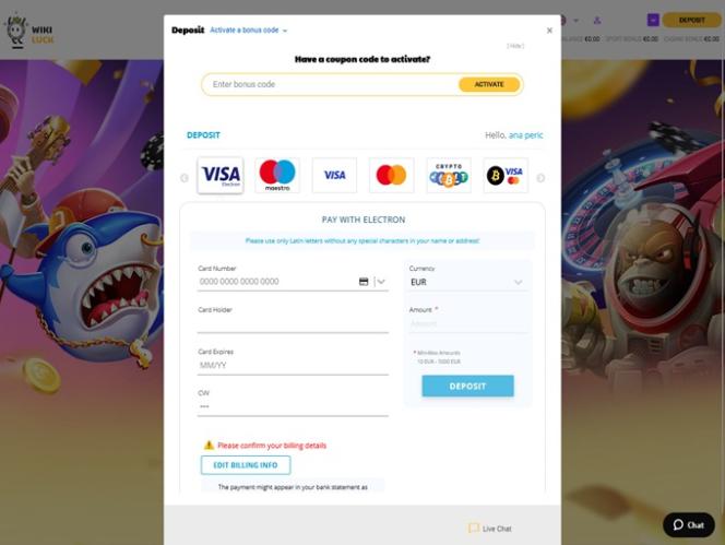 Wikiluckカジノのもう一つの大きな特徴は、幅広い決済手段です。従来の決済方法としては、 Visa 、 Mastercard 、 Jeton 、 Neteller 、 Paysafecard 、 Skrill 、銀行振込、 Astropayなどが利用可能です。一方、より現代的な決済方法を求めるプレイヤーは、ビットコイン、ビットコインキャッシュ、イーサリアム、ライトコイン、 USDコイン、リップル、テザーなどの暗号通貨をご利用いただけます。