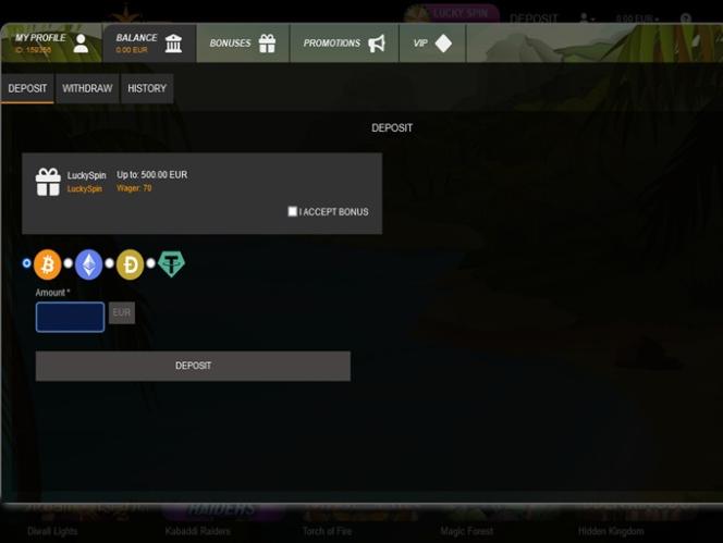 当サイトのバンキングシステムは非常に充実しており、Visa、MasterCard、Paysafecard、Maestro、Neteller、そして銀行振込による入金・出金が可能です。eWalletをご利用の場合、賞金の出金は2~3営業日以内、クレジットカードの場合は1~2営業日以内となります。銀行振込は最も遅く、出金に最大1週間かかります。出金限度額はかなり低く、VIPステータスによって異なりますが、新規プレイヤーは週に750ユーロまでしか出金できない場合があります。