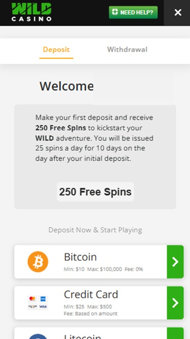 Wild Casinoは BetSoft, Rival, Visionary iGaming, Betgames, Arrows Edge, Nucleus Gaming, BGAMING, Concept Gaming, Fresh Deck Studios, PureRNG, Digital Gaming Solutions, Wager Gaming, Dragon Gaming, FlipLuck, Dragoon Soft and Urgent Gamesを採用しており、カジノのゲームはウェブベースのプラットフォームで提供されており、お使いのコンピューターのインターネットブラウザから読み込みます。これは、コンピューターのリソース消費を抑え、お好きなデバイスからプレイできるため、非常に便利です。ダウンロード版もご用意しておりますが、インターネット接続が遅い場合を除いてはお勧めしません。モバイルデバイスにも対応しており、スマートフォンやタブレットからプレイできます。