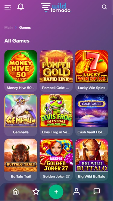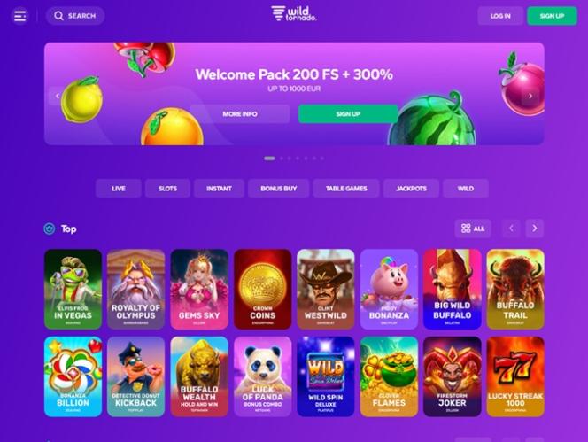 Wild Tornado Casinoは Microgaming, Net Entertainment, Playtech, BetSoft, 1x2gaming, Amatic Industries, Big Time Gaming, ELK Studios, Evolution Gaming, EYECON, Ezugi, Habanero Systems, iSoftBet, Play'n GO, playson, Quickspin, Relax Gaming, SOFTSWISS, Thunderkick, Vivo Gaming, Yggdrasil, Endorphina, Wazdan, GameArt, Betgames, Booming Games, Pragmatic Play, Nolimit City, Red Tiger Gaming, Booongo, LuckyStreak, Red Rake Gaming, Skillzzgaming, Fugaso, Belatra Games, Fantasma Games, Kalamba, Revolver Gaming, Platipus Gaming, Nucleus Gaming, Triple Edge Studios, BGAMING, Northern Lights Gaming, Evoplay, IGTech, Switch Studios, Electric Elephant Games, Pocket Games Soft, Bulletproof Games, All41 Studios, Gluck Games, Mascot Gaming, NetGame Entertainment, Gameburger Studios, Pulse 8 Studios, Neon Valley Studios, Golden Rock Studios, Swintt, TrueLab Games, SpinPlay Games, Mancala Gaming, SmartSoft Gaming, KA Gaming, Atmosfera, Blue Guru Games, On Air Entertainment, Holle Games, Buck Stakes Entertainment, Games Global, Reevo, Amusnet Interactive, 2by2 Gaming, CT Interactive, Push Gaming, Tom Horn Gaming, Iron Dog Studio, Foxium, Just For The Win, Reflex Gaming, PearFiction Studios, Wild Streak Gaming, Slingshot Studios, Fortune Factory Studios, RubyPlay, 4ThePlayer, AvatarUX, Gamevy, Crazy Tooth Studio, High 5 Games, ReelPlay, SlotVision, Alchemy Gaming, Rarestone Gaming, Snowborn Games, Boomerang Studios, Hacksaw Gaming, Gold Coin Studios, Bang Bang Games, Gamzix, SilverBack Gaming, Peter And Sons, Charismatic, Onlyplay, Gamebeat, Playgon, Area Vegas, 3 Oaks Gaming, Apparat Gaming, Spribe, Print Studios, 1spin4win, HammerTime Games, BetSolutions, Four Leaf Gaming, INO Games, Nailed It! Games, Neko Games, Reel Kingdom, Oros Gaming, Popiplay and Zillion Gamesを採用しており、カジノのゲームはウェブベースのインスタントプレイプラットフォームを通じて提供されます。このプラットフォームでは、ダウンロードソフトウェアを必要とせず、インターネットブラウザから直接ゲームを読み込むことができます。また、モバイルプレイにも対応しており、スマートフォンやタブレットでもプレイできます。