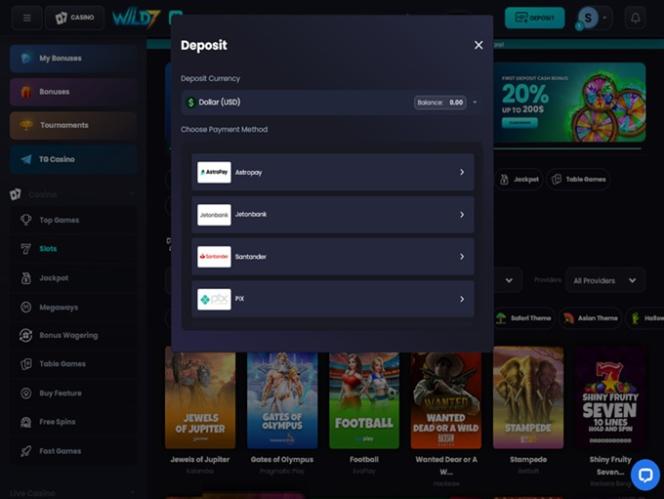 Wild7カジノでの金融取引にどの銀行オプションを選択しても、お住まいの地域のオンラインギャンブルでは一部の決済方法がご利用いただけない場合がありますのでご注意ください。すべての選択肢は国によって異なりますので、お住まいの地域に基づいて利用可能な決済方法をご確認ください。